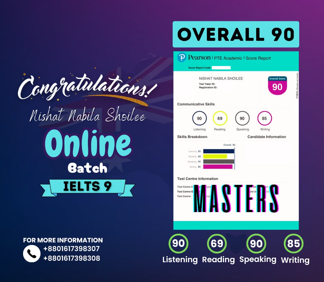Parsha Shanjana Brishti is the PTE instructor at Score Gain-PTE. She has completed her B.Sc. & M.Sc. under the Department of Zoology, Jahangirnagar University. She worked as a research assistant for almost 2.5 years at Aquatic Bioresource Research Lab, at Sher-e-Bangla Agricultural University. Mrs. Parsha Shanjana also has 1.5 years of experience in Classroom teaching under the Primary and Mass Education Ministry. Moreover, she has almost 1 year of teaching experience in the field of PTE training and served more than 100+ students to help them achieve more than their desired scores.